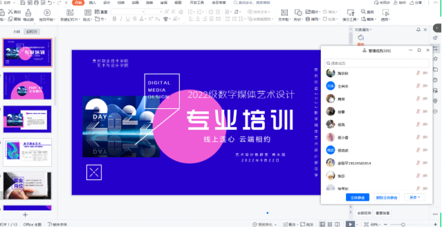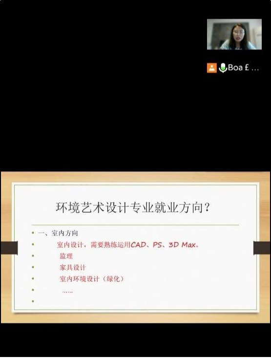 学院根据自身专业特色,特别举行“2022级新生入学教育专业课程介绍”线上讲座,安排设计教研室、传媒教研室、歌舞表演教研室相关负责人及专业老师参会,就各专业所设课程、就业方向、培养目标等方面向新生作了详细介绍,并指导学生准备各专业所需用具、软件。