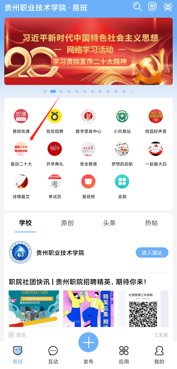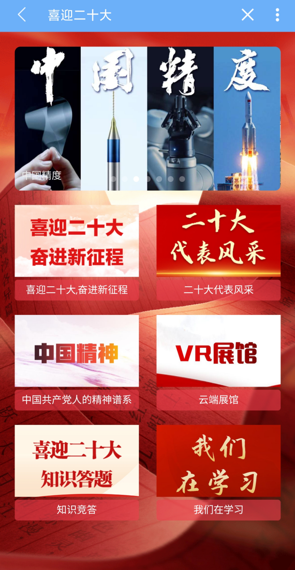 为迎接党的二十大胜利召开,10月14日,由学工部、信息工程学院联合制作的“喜迎二十大”线上学习展馆在易班平台上开通。展馆共分为六个板块,展现了近5年来党和国家事业的重大成就,中国共产党人精神谱系,党的二十大代表风采事迹,“喜迎二十大”知识竞答,遵义会议、四渡赤水等线上纪念馆以及学校学习宣传贯彻党的二十大精神的情况。