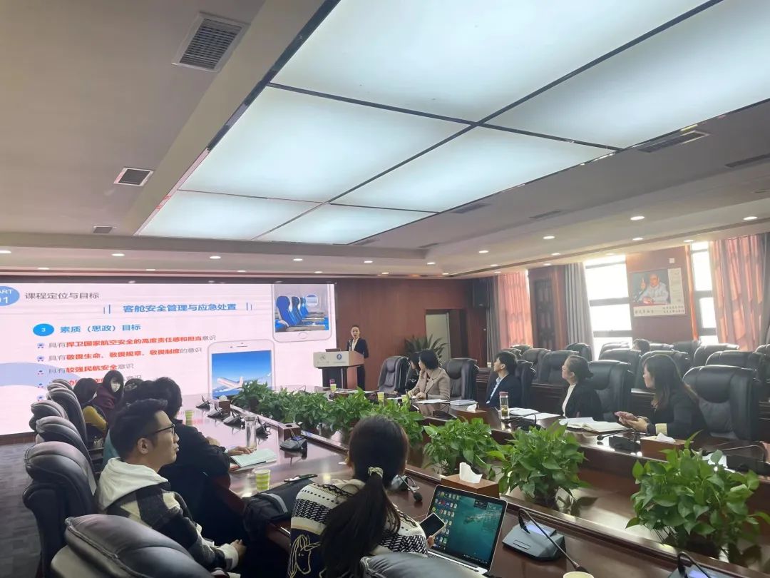 预答辩现场,计算机网络技术专业、空中乘务专业、电子商务专业专业带头人分别就其示范性人才培养方案中人培方案制订程序、实施过程、主要环节及特色与亮点进行汇报,团队中3位说课教师根据课程标准就课程如何落地实施进行说课。另外,省级产业学院项目团队在笃行楼二楼电商物流产教融合基地进行抽签及线上答辩准备。