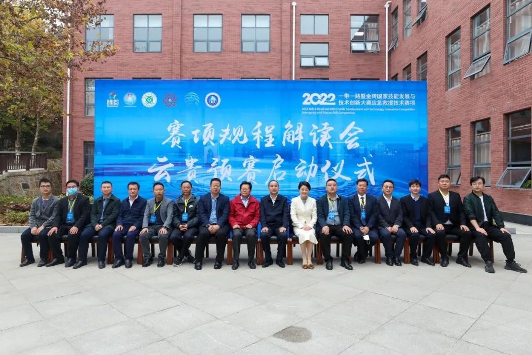 会上,汤健、张驎、于立群、崔志斌一同启动2022“一带一路”暨金砖国家技能发展与技术创新大赛应急救援技术赛项规程解读会云贵预赛。