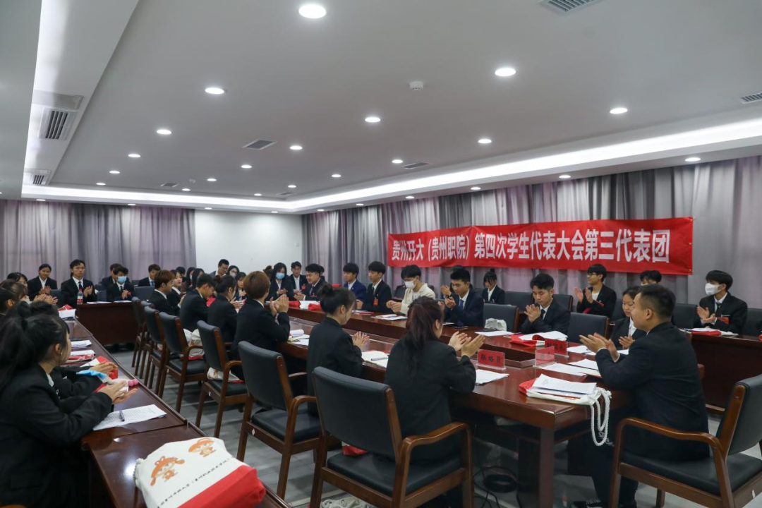 与会代表分五个代表团召开分团会议,讨论第三届学生会工作报告,集中学习了党的二十大精神。