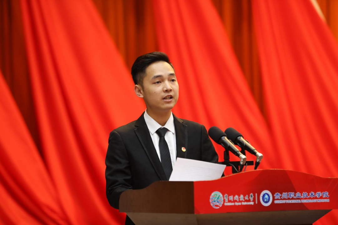 2022年11月14日,贵州开放大学(贵州职业技术学院)第四次学生代表大会在学校大礼堂举行开幕会,学校党委书记宋广强,党委副书记、校长汤健,党委副书记龚辉、钱庆生,党委委员、副校长李勤、于立群,党委委员、组织部部长张仁俊,共青团贵州省委学校部副部长刘艳及省学联代表出席开幕会,学校处级干部代表、青年教师代表、辅导员、各学院学生代表参加开幕会。开幕会由校团委书记李雪芬主持。