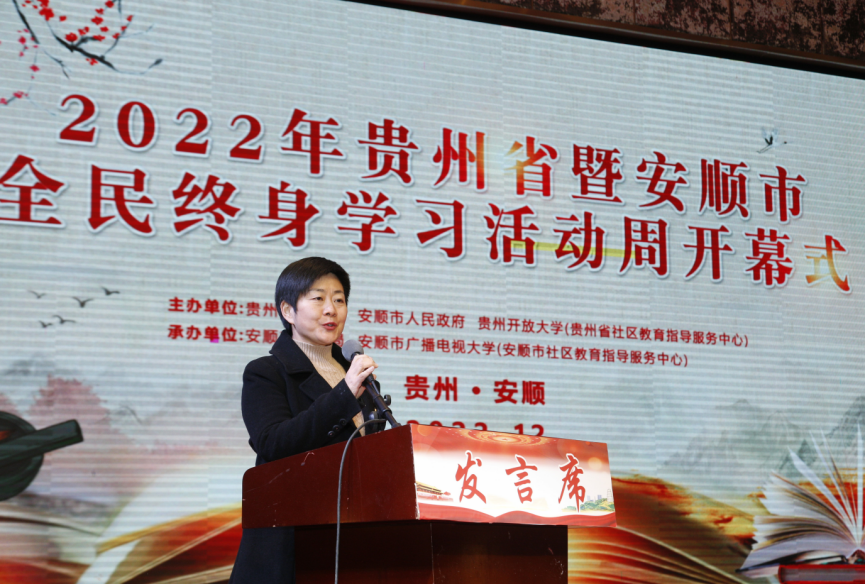 2022年12月20日上午,以“学习党的二十大 终身学习向未来”为主题的贵州省暨安顺市2022年全民终身学习活动周开幕式在安顺市隆重举行。本届活动周开幕式由贵州省教育厅、贵州开放大学、安顺市人民政府主办,安顺市教育局、安顺电大承办,安顺经济技术开发区牛蹄关(村居)等单位协办,以线下+直播方式举办。