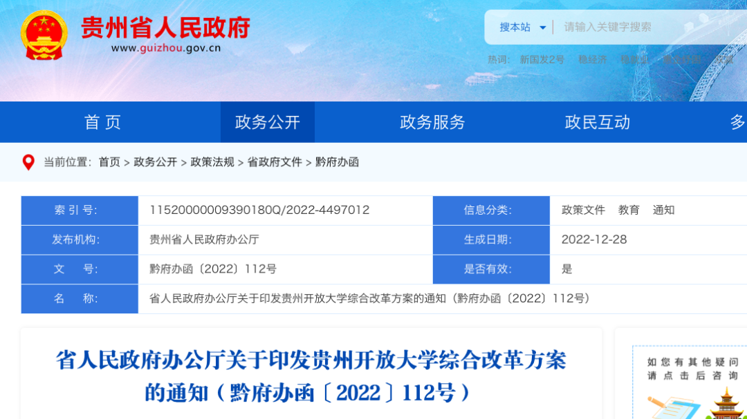 经省人民政府领导同志同意,现将《贵州开放大学综合改革方案》印发给你们,请认真抓好贯彻落实。