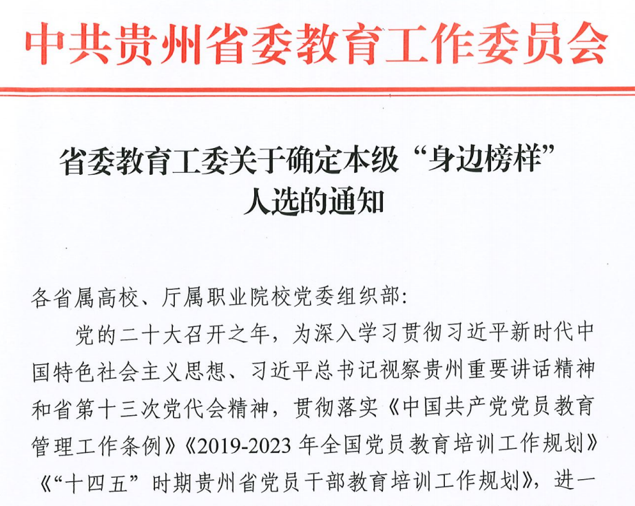 喜报 | 省委教育工委关于确定本级“身边榜样”人选的通知