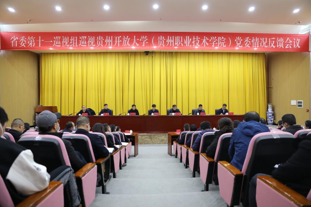 根据省委巡视工作统一部署,2023年2月9日,省委第十一巡视组向贵州开放大学(贵州职业技术学院)党委反馈巡视情况。省委第十一巡视组副组长韩兵兵同志传达省委书记、省人大常委会主任徐麟在省委常委会上听取十三届省委第一轮巡视工作情况汇报时的讲话精神。省委组织部副部长王瑞军同志出席反馈会并对抓好巡视整改工作作要求,省委第十一巡视组组长董桂文同志向贵州开放大学(贵州职业技术学院)党委领导班子反馈巡视意见。学校党委书记宋广强主持反馈会议并作表态讲话。