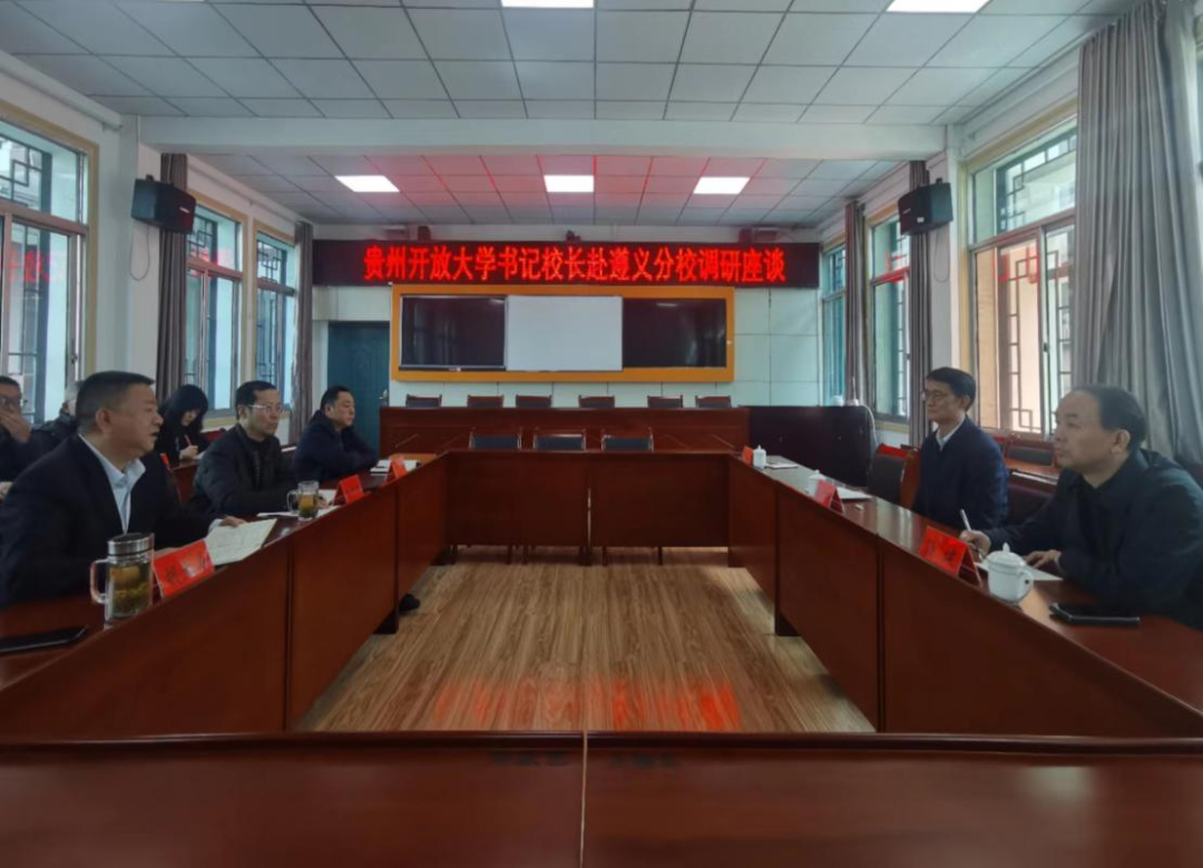 2023年3月21日下午,学校党委书记宋广强,党委副书记、校长汤健赴遵义分校调研指导。遵义分校党委书记朱新宇,党委副书记、校长胡大力陪同调研,正县级干部姚天发和各处室负责人参加了调研座谈会。