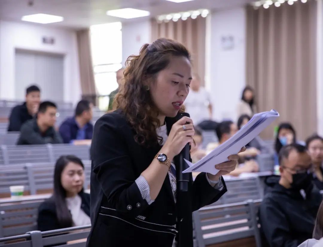 与会教师认真听讲座,在互动交流环节积极提问,洪莺老师耐心解答了老师们关于职称评审的提问。