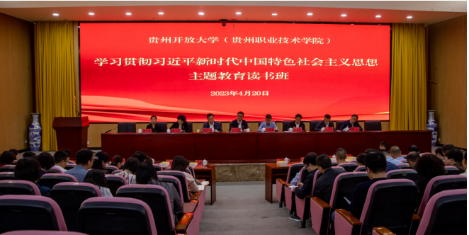4月18日上午,贵州开放大学(贵州职业技术学院)学习贯彻习近平新时代中国特色社会主义思想主题教育读书班开班。党委书记宋广强主持开班式并讲话。学校党委班子成员、副处级及以上干部、党外人士代表参加会议。省委第十九巡回指导组组长任建生、组员吴波出席开班式。
