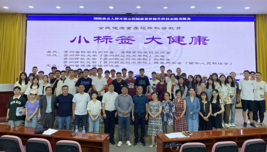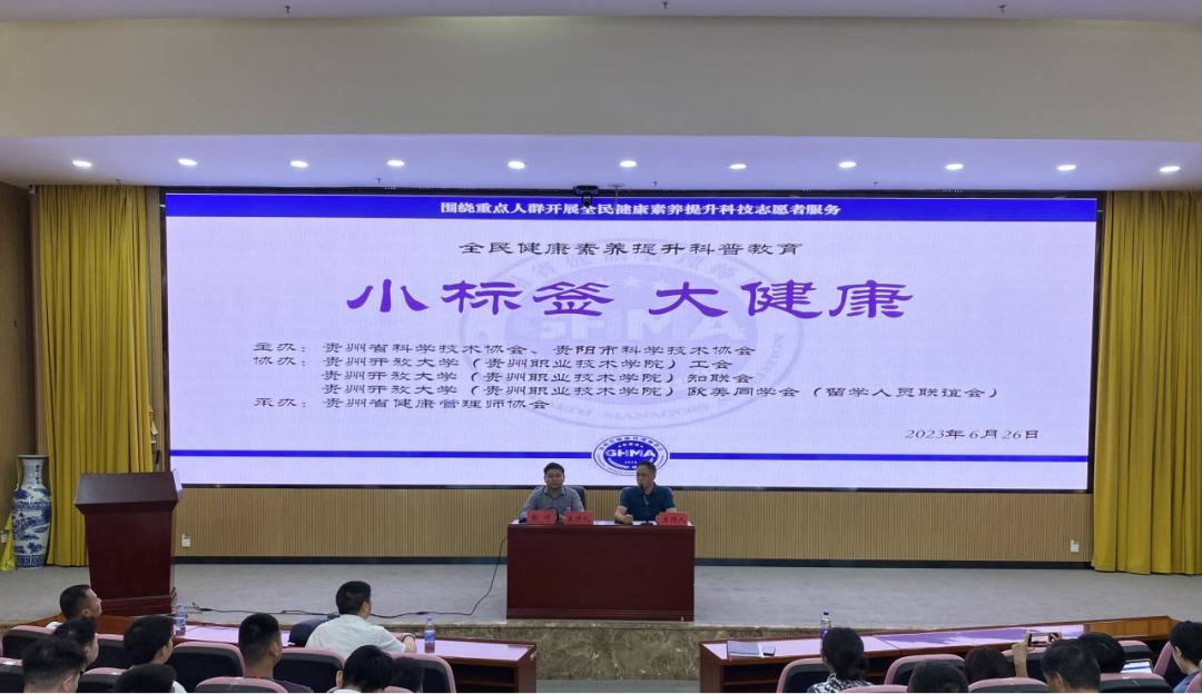 6月26日,学校师生代表参加了由贵州省科学技术协会、贵阳市科学技术协会主办,学校工会、知联会及欧美同学会(留学人员联谊会)协办,贵州省健康管理师协会承办的“全民健康素养提升科普教育”活动。活动邀请了贵州省健康管理师协会会长张科担任授课老师,张科老师以“小标签 大健康”为题,为大家带来一堂丰富多彩的健康讲座。活动由学校工会主席李晓平主持。