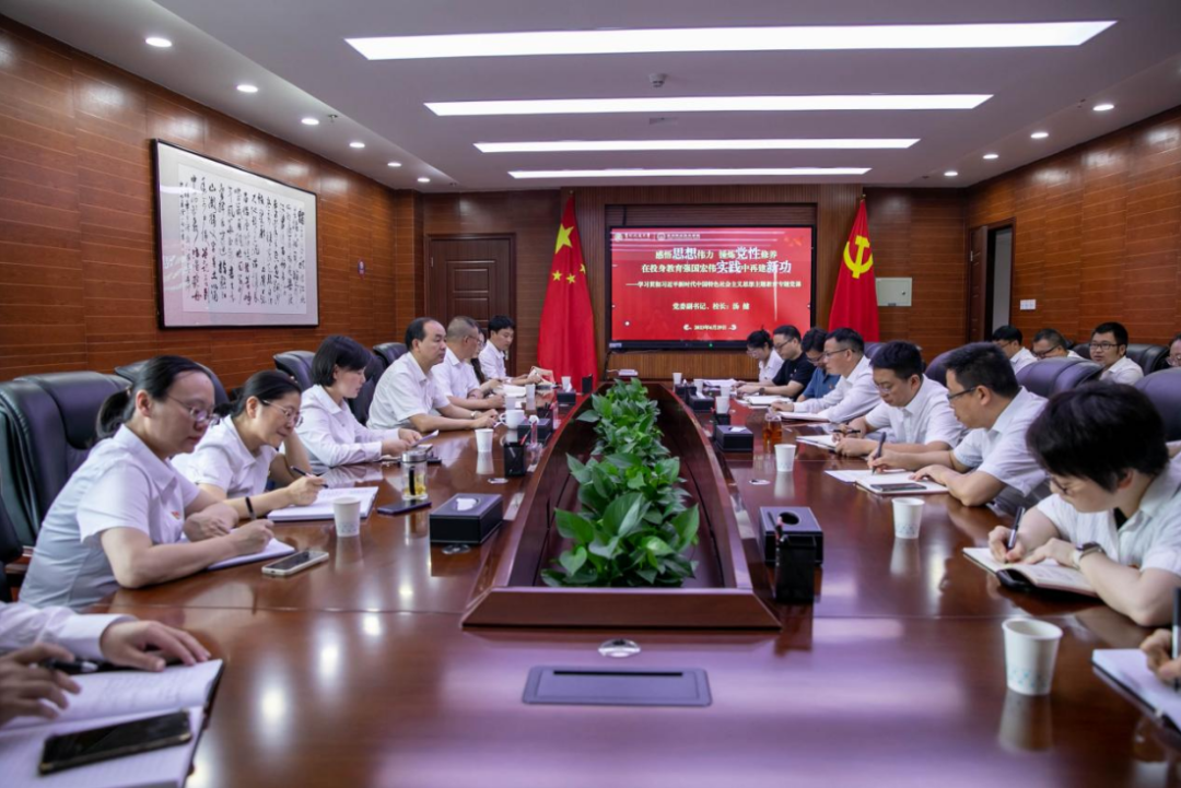 6月29日下午,为推进学习贯彻习近平新时代中国特色社会主义思想主题教育走深走实,党委副书记、校长汤健同志在云潭南路校区行政楼六楼会议室,结合个人学习收获、检视感悟、调研心得和学校改革发展实际,以《感悟思想伟力 锤炼党性修养 在投身教育强国宏伟实践中再建新功》为题讲授主题教育专题党课。主题教育省委第十九巡回指导组成员杨宣东、赵治国同志到场指导。党政办、发规处、审计处、国际学院全体党员和入党积极分子参加了党课学习。党课由办公室国际学院党支部书记陈莉娜同志主持。