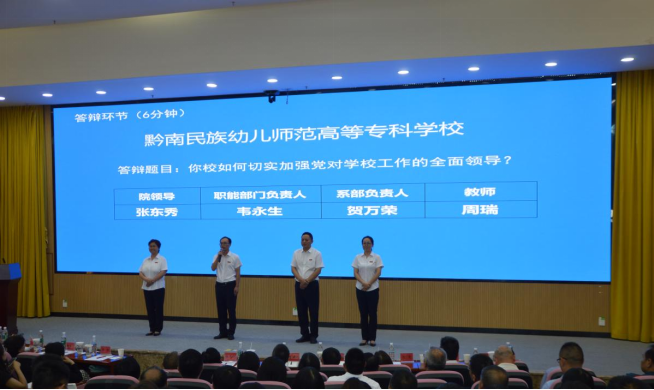 本次现场评审由各院校陈述学校建设方案、现场抽取专业群负责人陈述专业群建设方案、现场抽取团队成员进行答辩三个环节构成。评分由核心专家评分、大众评审团队评分和申报学校互评组成。评审会上,专家团队听取了贵州电子科技职业学院、贵州经贸职业技术学院、黔南民族医学高等专科学校、贵州工商职业学院和黔南民族幼儿师范高等专科学校5所院校的现场陈述和答辩并进行了评审。