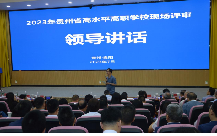 为扎实做好2023年贵州省职业教育“技能贵州”行动计划项目建设,推动贵州省高职院校高质量发展,7月5日上午,2023年贵州省高水平高职学校现场评审会议在我校召开。会议由贵州省教育厅主办,贵州职业技术学院承办。贵州省教育厅党组成员、副厅长杨天仪出席会议并讲话。