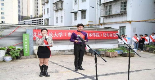 “真的没想到,在家门口就能看到这么精彩的反诈宣传节目!”二铺村居民今天谈论的焦点都是贵州开放大学(贵州职业技术学院)反诈宣传队进社区的事。2023年11月8日,学校反诈宣传队联合宾阳派出所,在二铺村开展“全民反诈,平安同行”防范电信网络诈骗宣传进社区活动。快板、小品、相声、情景剧、辩论,反诈宣传队用一个个短小精干的节目,把反诈知识、反诈技能和诈骗案例带进社区、深入家庭,现场掌声不断、反响强烈。