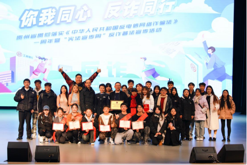 为持续掀起全民反诈热潮,按照国务院联席办关于组织《中华人民共和国反电信网络诈骗法》一周年宣传和省法宣办关于组织开展“宪法宣传周”的工作部署,“你我同心,反诈同行——反诈普法活动进校园”宣传活动于12月6日晚7时在贵州财经大学举行,我校应邀参加了此次活动并获得两项殊荣。