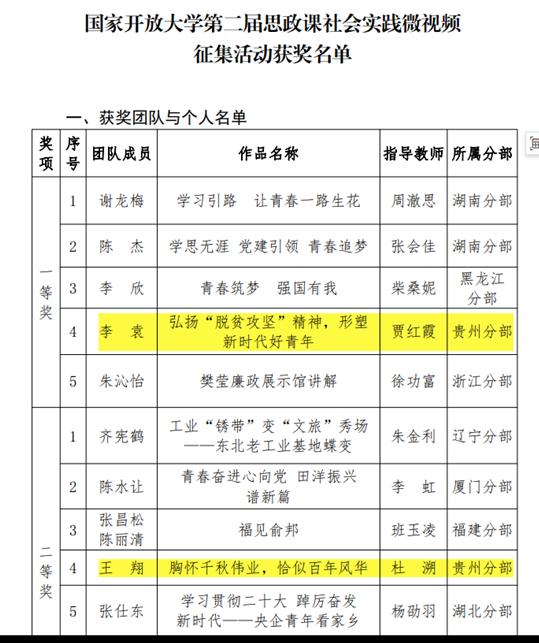 经过层层遴选,马克思主义学院贾红霞老师的参评作品《弘扬“脱贫攻坚”精神,形塑新时代好青年》荣获一等奖,杜溯老师的参评作品《胸怀千秋伟业,恰似百年风华》荣获二等奖,刘珂老师的参评作品《莲只盛夏 廉存千秋》荣获优秀奖。与此同时,贵州分部在此次活动中荣获优秀组织奖。