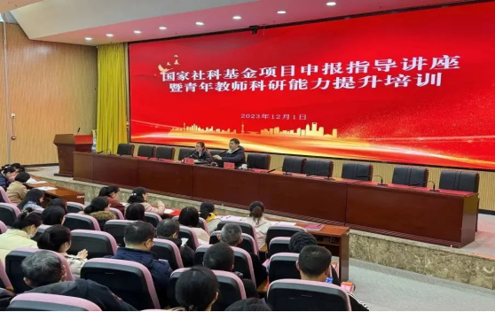 为深入贯彻党的二十大精神,精准落实“科教兴国战略,强化现代化建设人才支撑”,凝心聚力助推学校高质量发展。12月1日上午,国家社科基金项目申报指导讲座暨青年教师科研能力提升培训会在行政楼9楼会议室如期举办,科研处处长陈舒主持会议。学校学术带头人、中青年科研骨干、副高级职称以上教师、博士以及青年教师参加会议。特邀贵州大学副教授、硕士生导师、国家社科基金项目主持人张波担任主讲嘉宾。