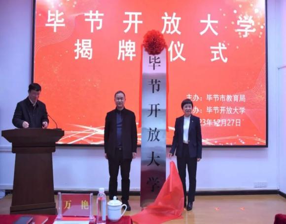 12月27日下午,毕节广播电视大学举行更名揭牌仪式,揭牌仪式在学校四楼阶梯教室隆重举行。