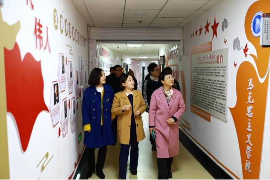 令狐彩桃书记首先参观了马克思主义学院党史文化墙、学术报告厅、思政课集体备课室以及走访学院办公室,查看思政教师办公环境。