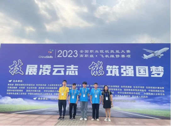 2023年8月20日,全国职业院校技能大赛飞机维修赛项在成都航空职业技术学院举行,本次比赛共有来自全国的47支代表队同台竞技。经过3天的激烈角逐,在我校航空学院老师张庆、丁当的悉心指导下,由李顾、徐龙马、高旭3名学生组成的参赛队荣获三等奖。