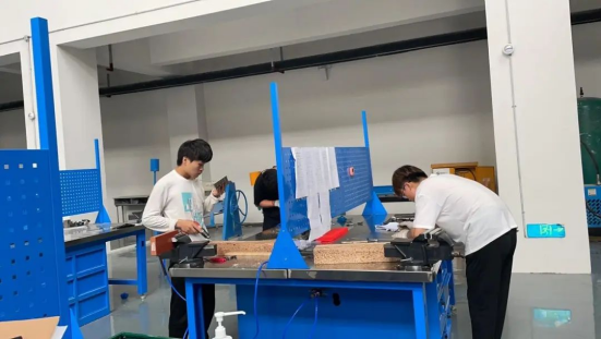 飞机发动机拆装调试与维修赛项是三人团队赛,共有三个模块。每一个模块都需要无比默契的配合,考验团队间的相互信任。特别是在飞机铆装结构修理板块,一位同学的尺寸加工失误,可能就会导致整个加工零件的失败。这也是和真实的飞机维修环境所对应的,航空维修中一个螺丝钉的松动都可能会导致大问题。因此,在备赛中,老师会要求同学们同进同出训练场,经常在一起吃饭、跑步,甚至放松打游戏,为的就是培养团队之间的默契度,只有相互信任,团队成员能知道彼此优缺点,才能发挥自己的优势主动弥补。