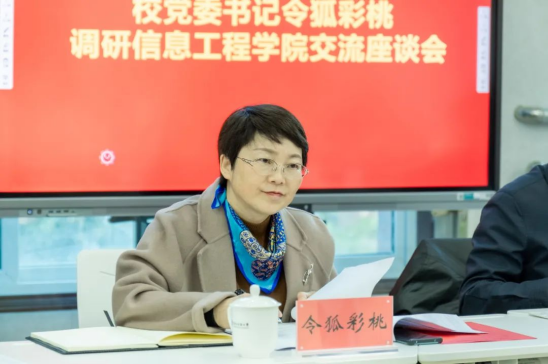 1月18日上午,学校党委书记令狐彩桃,党委委员、副校长周勇一行到信息工程学院调研指导。信息工程学院班子成员、党支部书记、教研室主任、科室负责人、教师代表及全体辅导员参加调研。