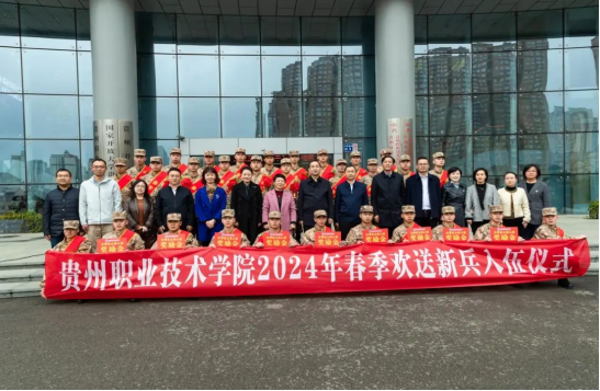 送兵仪式中,汤健校长宣读了《贵州职业技术学院2024年春季入伍学生名单》。