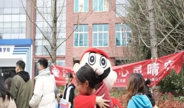 活动工作人员身穿卡通人物服装,给路过的师生送去“爱的抱抱”,及真诚的祝福、鼓励!形象可爱的卡通人物吸引了许多路过的同学和教师,大家纷纷与卡通人物合影拥抱,勇敢表达自己的感恩与祝福。