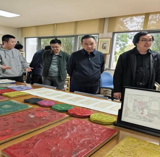 3月27日,调研组一行来到全国工艺美术职业教育的“头部”学校苏州工艺美术职业技术学院。该校位于古吴胜地石湖之滨、上方山麓,有着悠久的办学历史,厚重的育人文化,是全国双高建设学校。在桃花坞木刻年画社、天工存艺坊等实训基地考察中,副校长秦怀宇全面介绍了该校在校园建设规划、人才培养、校企合作等方面的成功经验。座谈会上,校长刘珽在介绍学校概况时强调,苏州工艺美术职院立足苏州,形成了多科相融,传统工艺美术专业与现代艺术设计专业并重的专业格局,为地方文化创意产业培养了大批优秀人才,积极推动了文化创意产业的发展。她希望借助我校考察调研之机,双方就“双高”建设、师资队伍建设等方面进一步加强交流与合作,共同推动两校高质量发展。