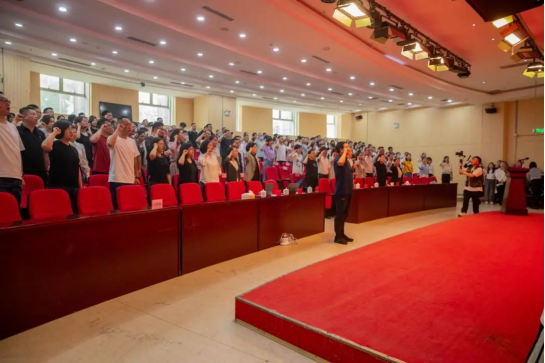随后,航空学院严璐璐老师以“教学相长,风正气扬”为题代表教师作交流发言。全体教师进行宣誓,教师工作部部长陈鹰领誓。