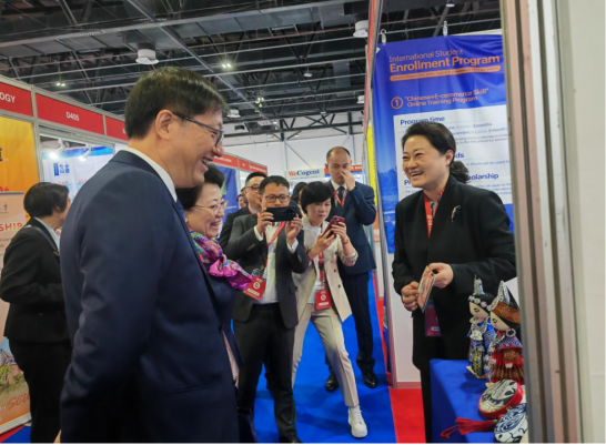 迪拜国际教育展和埃及“留学中国”说明会受到了阿联酋与埃及两国学生、家长的广泛关注。我校代表团积极向前来咨询的学生、家长及部分高校负责人介绍我校的基本情况、学校优势,并解读了学校“中文+职业技能”线上培训项目国际学生招生政策。展会期间,共百余人次前来我校展区咨询、交流,部分参展的学生对我校开展的“中文+职业技能”线上培训项目很感兴趣,达成了初步学习意向。我校与多所高校就学生交流、中文培训项目达成了初步交流合作意向。