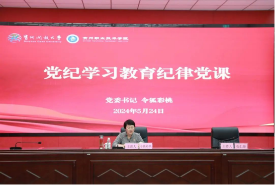 为进一步推动党纪学习教育走深走实,持续在学纪、知纪、明纪、守纪上下功夫,5月24日下午,学校党委书记令狐彩桃为八鸽岩校区党委全体党员和离退休党员代表上党纪学习教育纪律党课。党课由学校党委副书记张仁俊主持。