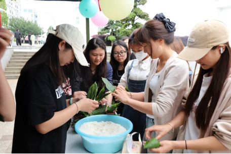 学院教师受邀担任赛事裁判,对各个“粽”队在10分钟之内完成的粽子数量、粽子美观和团队协作情况进行评分。
