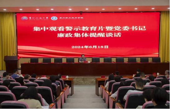6月18日,贵州开放大学(贵州职业技术学院)在云潭南路校区行政楼九楼会议室集中观看了省纪委省监委制作的刘文新案警示教育片。学校党委书记令狐彩桃主持并对全体参会人员进行集体廉政谈话。学校党委班子成员、副处级以上干部及离退休干部代表60余人参加。