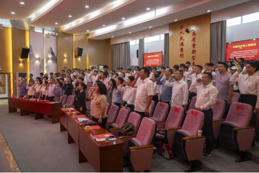 在林瑶书记的带领下,全体人员起立,重温了入党誓词,并齐声高唱《三大纪律八项注意》。