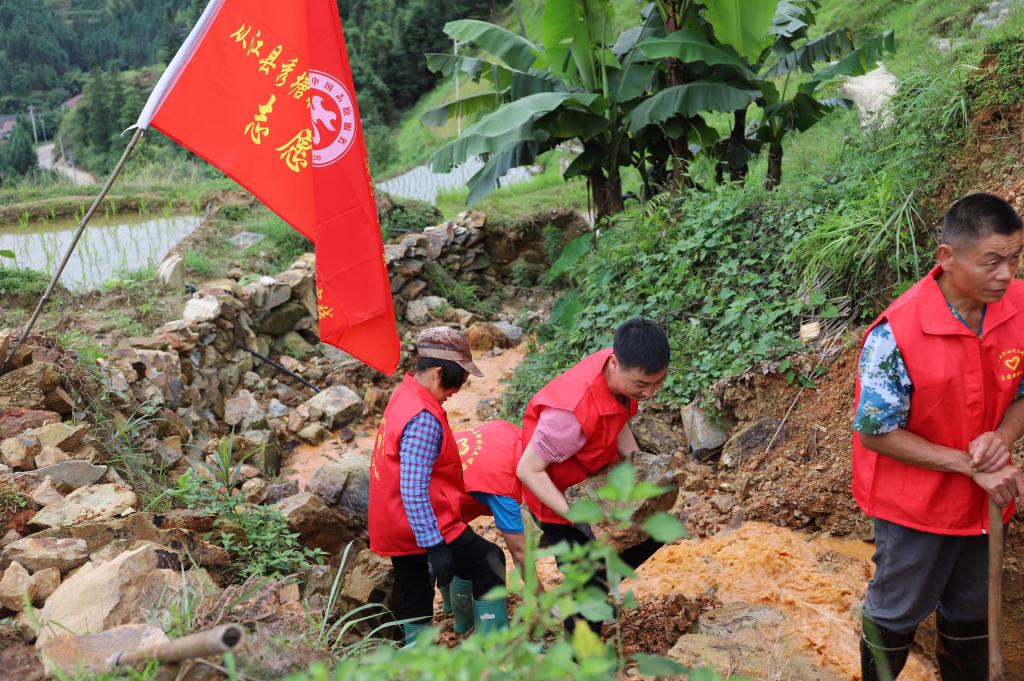 6月1日,由于二是塘洞村连续降雨,导致上塘洞寨至下塘洞寨的步道中断,给两组老百姓的生活带来很多不便,为解决老百姓的困惑,驻村第一书记第一时间组织志愿者服务队和村民,对损坏的步道进行改造和修复。