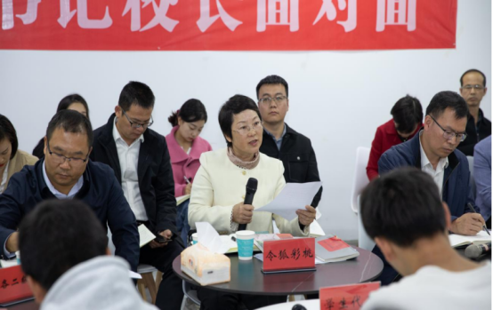 为深入学习贯彻落实习近平总书记关于教育的重要论述,营造倾听学生心声、关心学生成长、促进学校发展的良好氛围,打通“一站式”学生社区服务学生的“最后一公里”,11月7日下午,学校在学生事务中心举办本学年“我和书记校长面对面”活动第三期。学校党委书记令狐彩桃、党委副书记罗玲龙、党委学工部、教务处、后勤处、保卫部、招就中心、团委、图书馆、各二级学院负责同志及各学院学生代表40余人参加,活动由学工部主持。