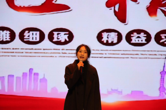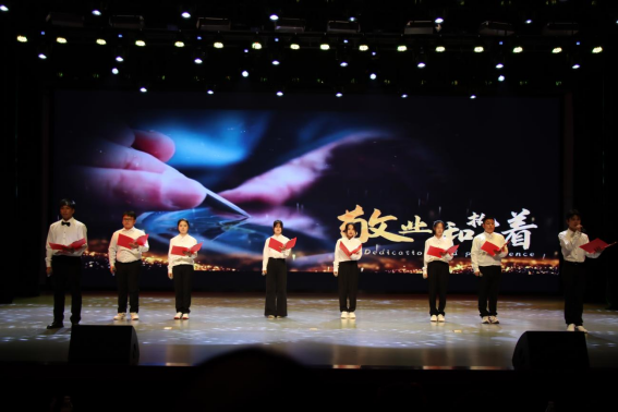 比赛间隙,建筑工程学院的同学带来了朗诵表演《工匠礼赞》,他们用自己的声音深情地传递了对工匠精神的崇高敬意。