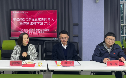 12月3日下午,马克思主义学院思想道德与法治教研室、商业与贸易学院法律事务教研室于笃行楼智慧教室开展了“思政课程与课程思政协同育人集体备课教学研讨会”,学校副校长周勇莅临指导会议开展并参与了研讨,会议由商业与贸易学院院长袁德臻主持。此次会议旨在深入探索法治教育中思政课程与课程思政的有机融合,提升人才培养质量,推动立德树人根本任务的落实。
