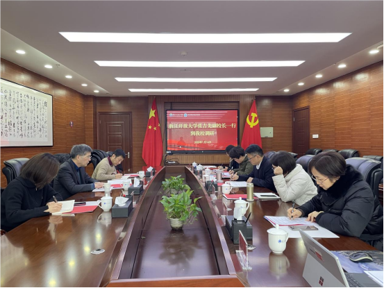 1月14日,浙江开放大学张吉先副校长一行到我校调研交流,党委委员、副校长周勇出席会议并主持调研交流座谈会,开放教育事业部、继续教育学院(社区教育指导服务中心)主要负责同志和相关人员参加会议。