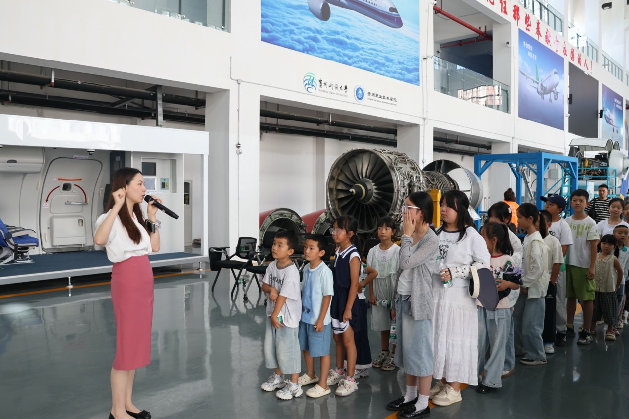 本次活动涵盖多个主题,内容丰富、形式多样。学生们在航空学院实训基地参观了飞机结构修理、涡浆发动机等展区,体验动态客舱模拟器,观看无人机飞行演示,沉浸式感受科技的魅力。