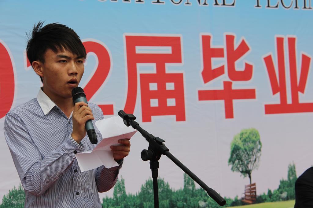 优秀毕业生代表、2009级会计(3)班学生蒋训祥同学发言,他首先代表全体毕业生对三年来悉心培养、诲人不倦的学院领导、老师们表示最诚挚的感谢,他说三年的校园生活不仅仅是个人求学历程上的一段缩影,更成为了人生道路上的一个标志,标志着自己从懵懂走向成熟,将背负起更多更大的责任。他代表全体毕业生表示将牢记学院领导、老师的谆谆教诲,遵循“学以致用,追求卓越”的校训,在自己的工作岗位上建功立业,为母校争光。