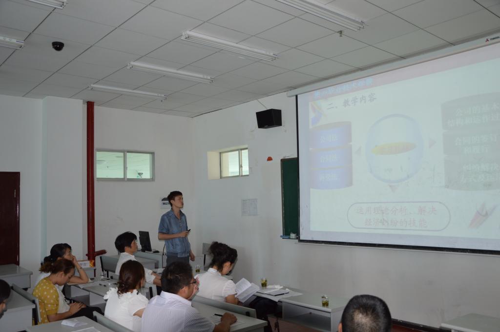 9月3日下午2点,商贸系在B栋808教室开展了专业剖析以及说课模拟。模拟活动由徐晓莉教授主持,模拟专家组由基础部陈国敏主任,评估办李旭老师及系书记周吉萍组成。商贸系全体教职工和各专业部分学生参与此次活动。
