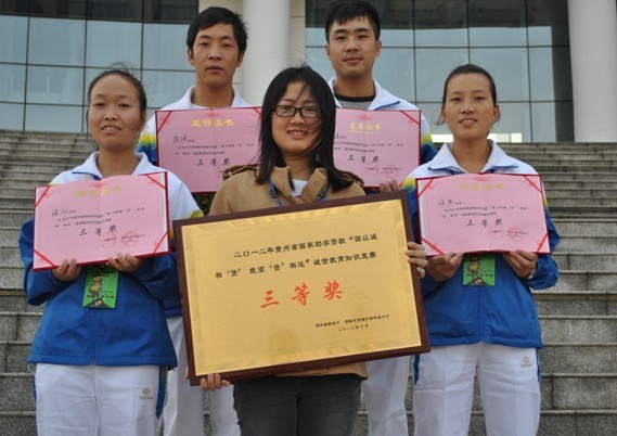 由省教育厅、国开行省分行主办,贵州大学承办的2012年贵州省国家助学贷款“国以诚相贷,我须信相还”诚信教育知识竞赛,于10月24日至25日在贵州大学北区隆重举行。我院胡继、段远洁、张仙、张琴四位同学组成的代表队在比赛中取得优异成绩,荣获三等奖。