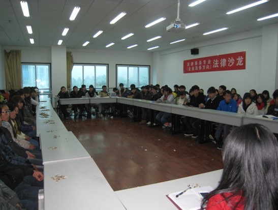 2012年12月10日,为了帮助法律事务专业学生提高学生学习效率,商贸系法律教研室举办了就法律专业课程的学习方法与技巧进行探讨交流的“法律沙龙”活动。商贸系法律教研室全体教师会同团总支黄丽娟书记、院党办唐智老师及2012级法律事务专业班主任张珈源、辅导员唐慧颖参加了此次活动。