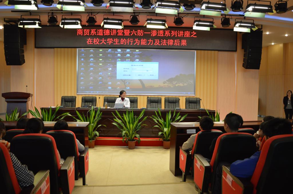 为创建和谐平安校园,增强学生的法律安全意识,商贸系于2013年3月22日下午在贵州职院图书馆多功能厅举行题为“在校大学生行为能力及法律后果” 法律知识讲座。本次讲座为道德讲堂系列讲座第二站,由商贸系法学副教授黎嫦娟老师主讲,商贸系300学生参加。