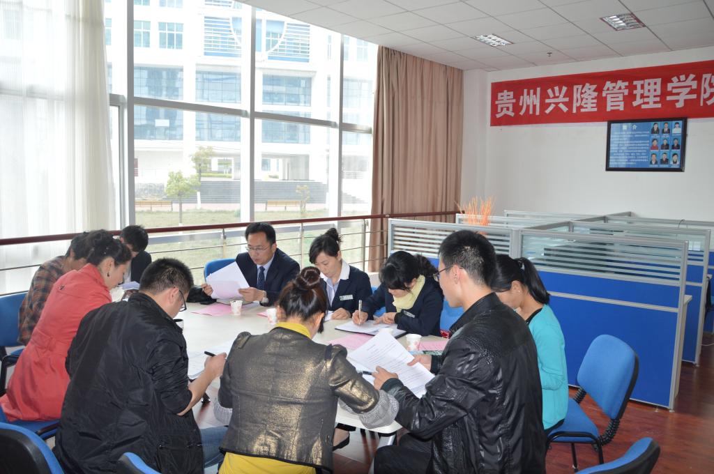 2013年3月25日下午14:30分,兴隆管理学院第二次务虚会在贵州职业技术学院行政楼214会议室召开。贵阳兴隆物业管理有限公司总经理屈培军、总经济师李桂勇、财务总监张驰以及贵州职业技术学院商贸系副主任赵霖、办公室主任张进、商务教研室主任徐晓莉、团总支副书记黄丽娟会同袁徳臻、黄守峰、张珈源、郭知涛老师参加了此次会议。会议由赵霖主任主持。