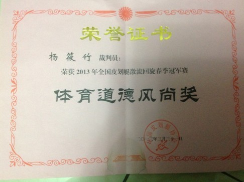 本次比赛项目包括男子双划、女子单皮、男子单皮、男子单划、女子单划及男子双划基本功比赛等共10个项目,其中有4个项目为奥运比赛项目。举办本次比赛的四川米易国家皮划艇激流回旋训练基地,曾举办洲际、国家级、省级体育单项比赛10余次,该基地渠道全长3689米,S型比赛道长310米,落差7米,水流16—18立方米/秒。在本次比赛中由于工作表现出色,杨筱竹还被主委会授予优秀裁判员称号。
