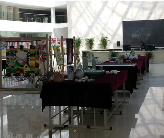 4月25日,艺术系在图书馆开展了艺术设计专业学生作品展,本次展出的作品有校企合作的作品,有在陶艺、纤维、平面设计工作室通过项目教学的作品,通过作品展,检验教学和实训,通过展、评、赛的方式来促进艺术设计专业的建设。