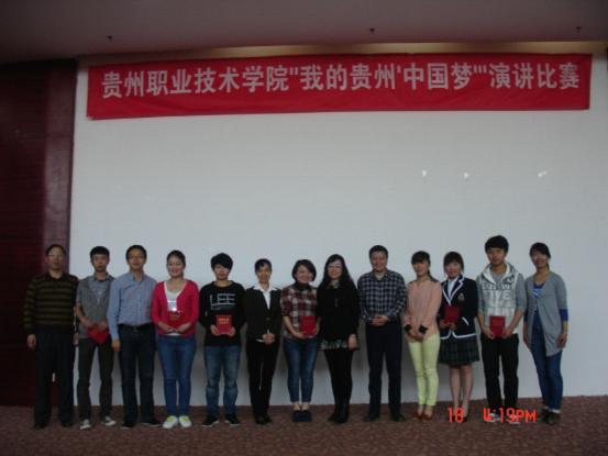 本次比赛一等奖为商贸系何婉莹、李俊;二等奖为商贸系徐飞、王超;三等奖为艺术系蒋新、信息系陈荣、工程系王建。据悉,本次大赛一等奖获得者何婉莹、李俊两位同学代表我院参加全省校园文化活动月“我的贵州‘中国梦’”主题演讲比赛总决赛。